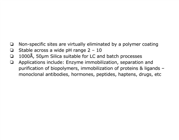 •采用1000Å孔径、50μm粒径的硅胶基质,适合用于液相色谱(LC)和批量处理
