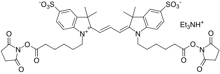 A variety of cyanine 5.5 (Cy5.5®) dyes has been used to label biological molecules for fluorescence imaging and other fluorescence-based biochemical analysis. They are widely used for labeling peptides, proteins and oligos etc. Cy5.5® dyes are one type of the most common red fluorophores. Cy5.5® maleimide readily reacts with thiol groups. Cy5.5® is the trademark of GE Healthcare.花青素