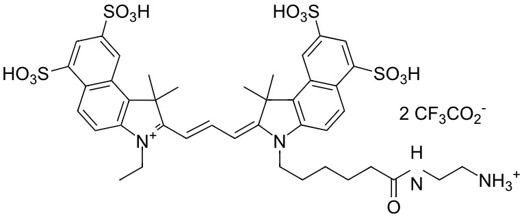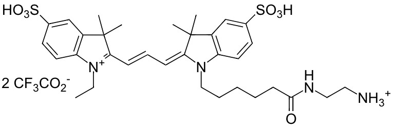 A variety of cyanine 5.5 (Cy5.5®) dyes has been used to label biological molecules for fluorescence imaging and other fluorescence-based biochemical analysis. They are widely used for labeling peptides, proteins and oligos etc. Cy5.5® dyes are one type of the most common red fluorophores. Cy5.5® azide selectively reacts with alkyne groups. Cy5.5® is the trademark of GE Healthcare.
