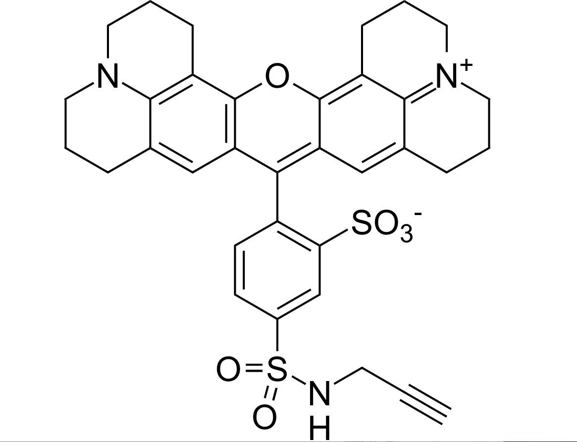 5-TAMRA叠氮化物是一种优异的炔烃反应性荧光试剂,通过著名的点击化学标记含炔烃的生物分子。其光谱特性与TRITC偶联物相同,因此TRITC偶联物的所有仪器设置均适用于5-TAMRA叠氮化物偶联物的应用。