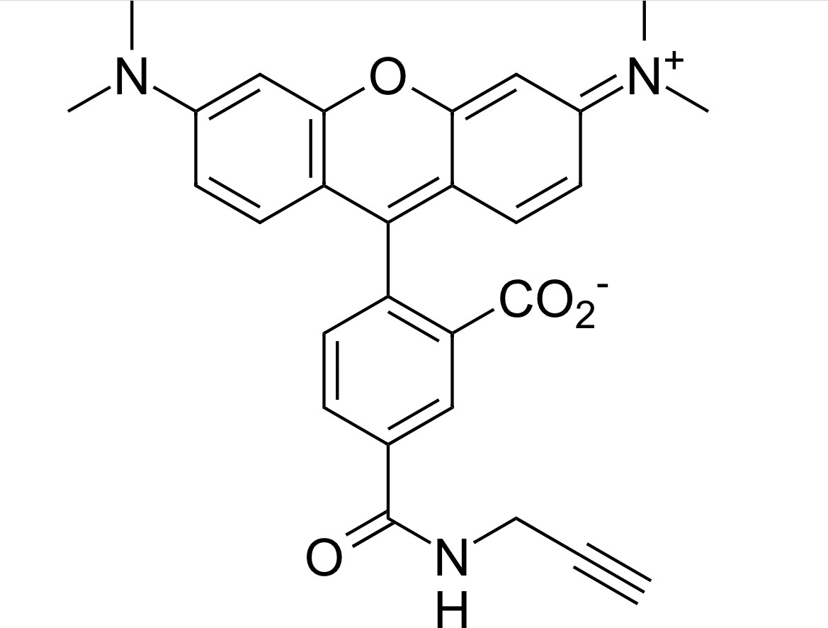 6-TAMRA叠氮化物是一种优异的炔烃反应性荧光试剂,通过著名的点击化学标记含炔烃的生物分子。其光谱特性与TRITC偶联物相同,因此TRITC偶联物的所有仪器设置均适用于6-TAMRA叠氮化物偶联物的应用。