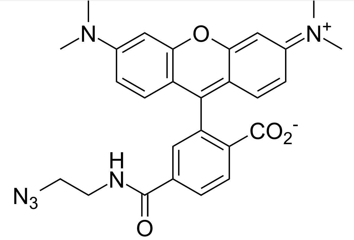 6-TAMRA炔烃是一种优异的叠氮反应性荧光试剂,通过著名的点击化学标记含叠氮的生物分子。其光谱特性与TRITC偶联物相同,因此TRITC偶联物的所有仪器设置均适用于6-TAMRA炔烃偶联物的应用。