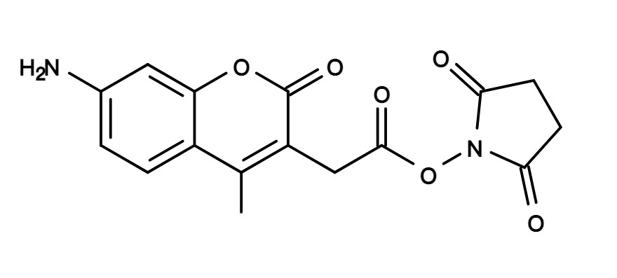 AMCA是最明亮的蓝色荧光标记染料之一。它可在365 nm处被良好激发。其光稳定性相当好,且在pH 4至10范围内荧光不受pH影响。这种AMCA C2马来酰亚胺可用于标记硫醇化合物。