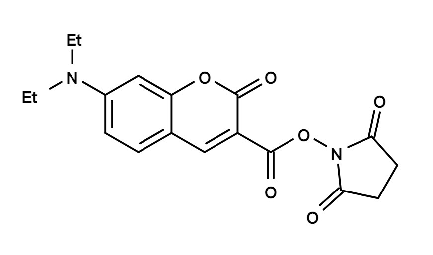AMCA是最明亮的蓝色荧光标记染料之一。它可在365 nm处被良好激发。其光稳定性相当好,且在pH 4至10范围内荧光不受pH影响。这种AMCA染料可通过点击化学用于标记炔烃化合物。