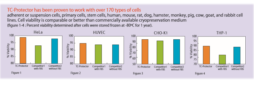 TC-Protector细胞冷冻保护剂(细胞冻存液)适用于细胞系细胞、普通细胞、ES细胞(胚胎干细胞)、成体干细胞以及人iPS细胞(诱导多能干细胞)。因其不粘稠,且不产生气泡,因此使用便利性极佳。