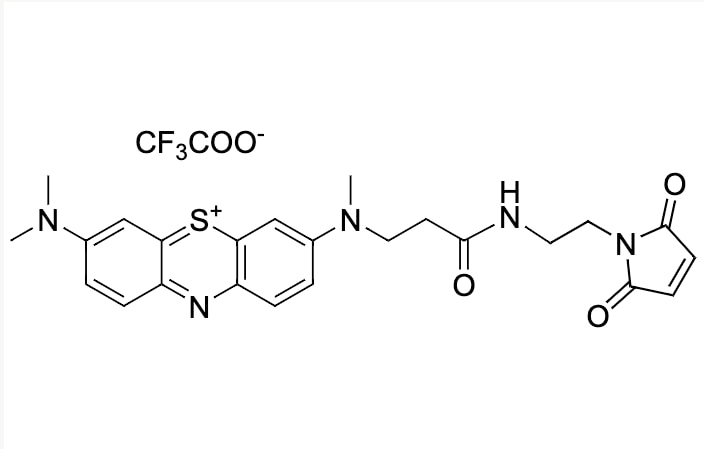 亚甲蓝(MB)广泛用作核酸研究中的氧化还原指示剂。亚甲蓝(MB)叠氮化物是从炔烃修饰的寡核苷酸(包括DBCO修饰的寡核苷酸)制备MB标记核酸探针的优良构建模块。MB也是一种著名的光敏剂,用于光动力疗法,并正在研究通过PDT模式局部治疗各种皮肤感染。它是一种常见的生物染料,常用于医学实验室对细胞和组织进行染色以便显微镜检查,有助于观察细胞结构和识别异常。此外,MB在治疗神经退行性疾病(如阿尔茨海默病和帕金森病)中的潜在作用也已被研究。一些研究表明,它可能对神经元和线粒体功能具有保护作用。