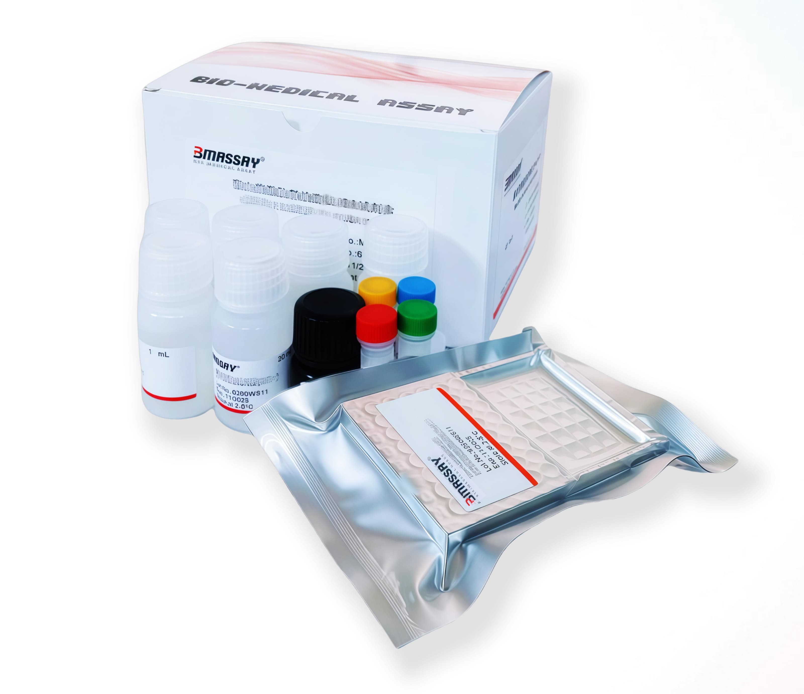 预包被酶标板(可拆式);标准品;浓缩生物素化抗体;浓缩酶结合物(ABC);酶结合物(ABC)稀释液;抗体稀释液;标准品稀释液;样品稀释液;浓缩洗涤液(25×);显色剂A;显色剂B;终止液