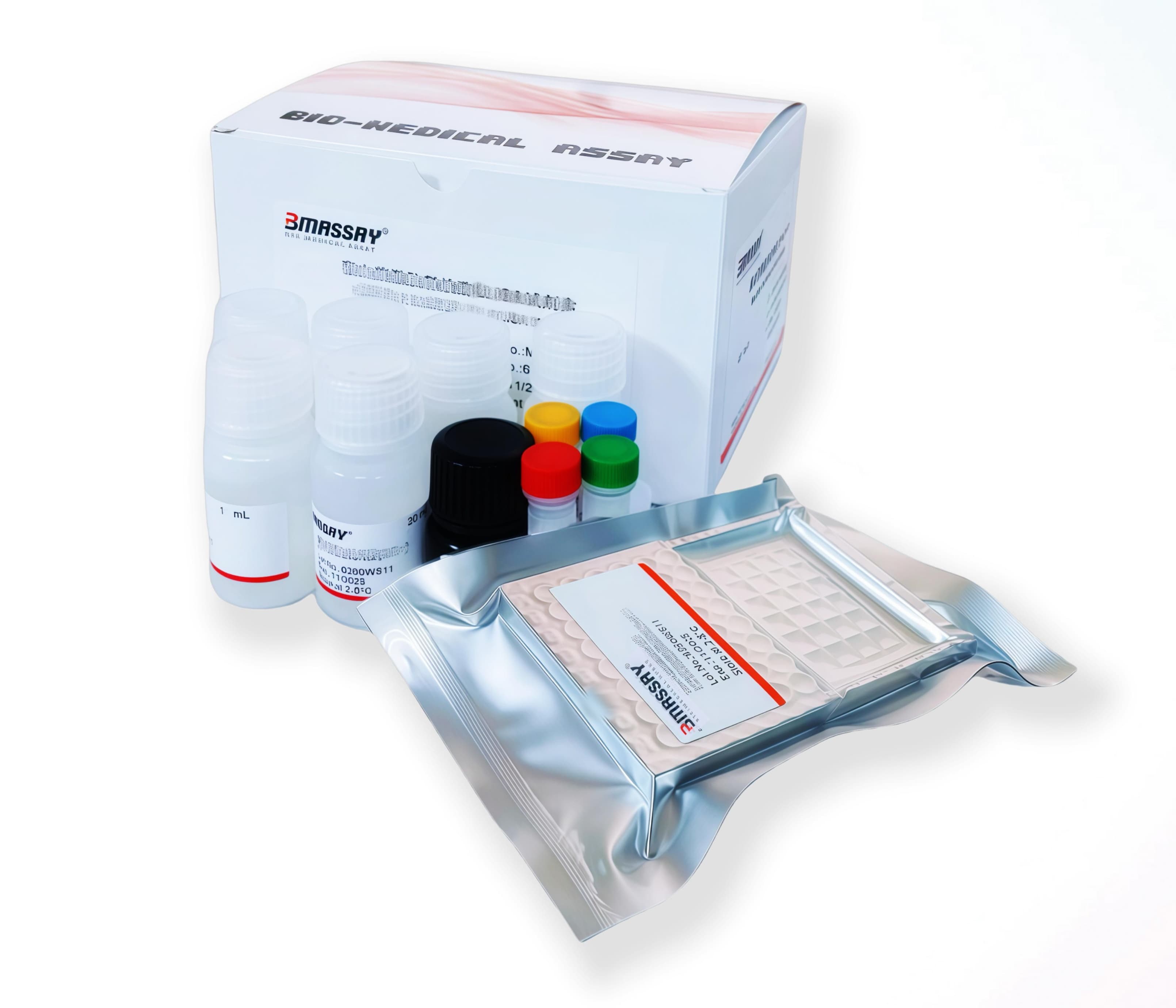 预包被酶标板(可拆卸);标准品;浓缩生物素化抗体;浓缩酶结合物(ABC);酶结合物(ABC)稀释液;抗体稀释液;标准品稀释液;样品稀释液;浓缩洗涤液(25×);显色剂A;显色剂B;终止液